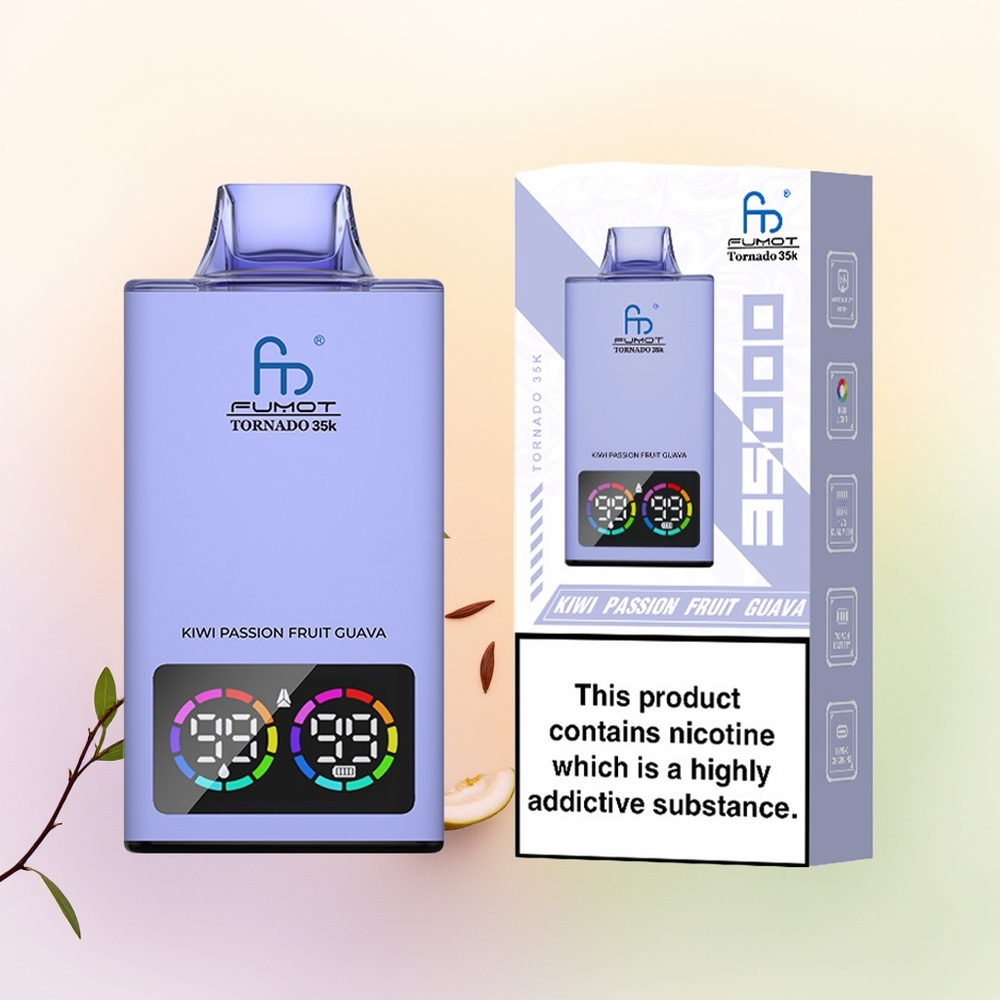 Fumot Tornado 35000 جوافة فاكهة العاطفة الكيوي مع ضوء متغير